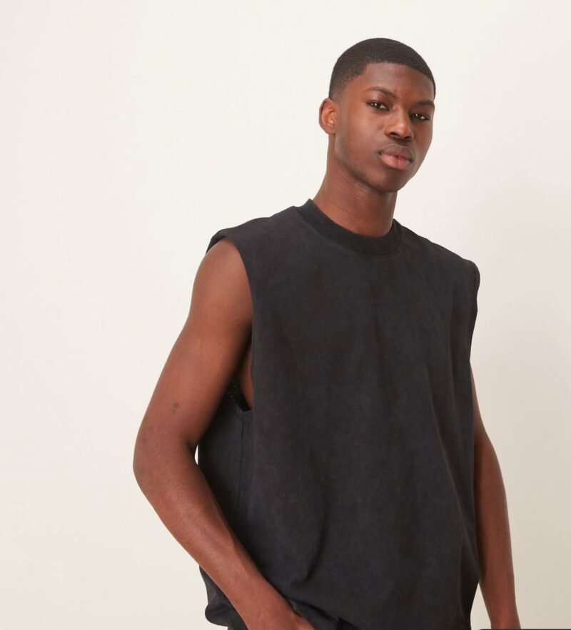 ASOS DESIGN oversized heavyweight washed tank 220gsm in black